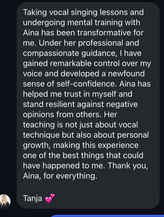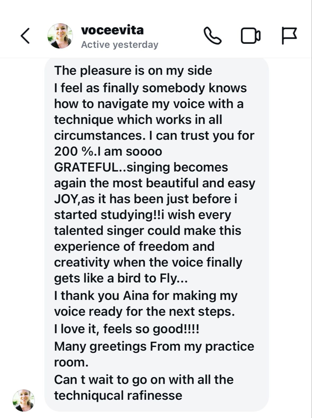 For 18 years, I've been the only coach in the world combining the old school Bel Canto technique with sports psychology methods. This has helped countless women unlock their true vocal potential.