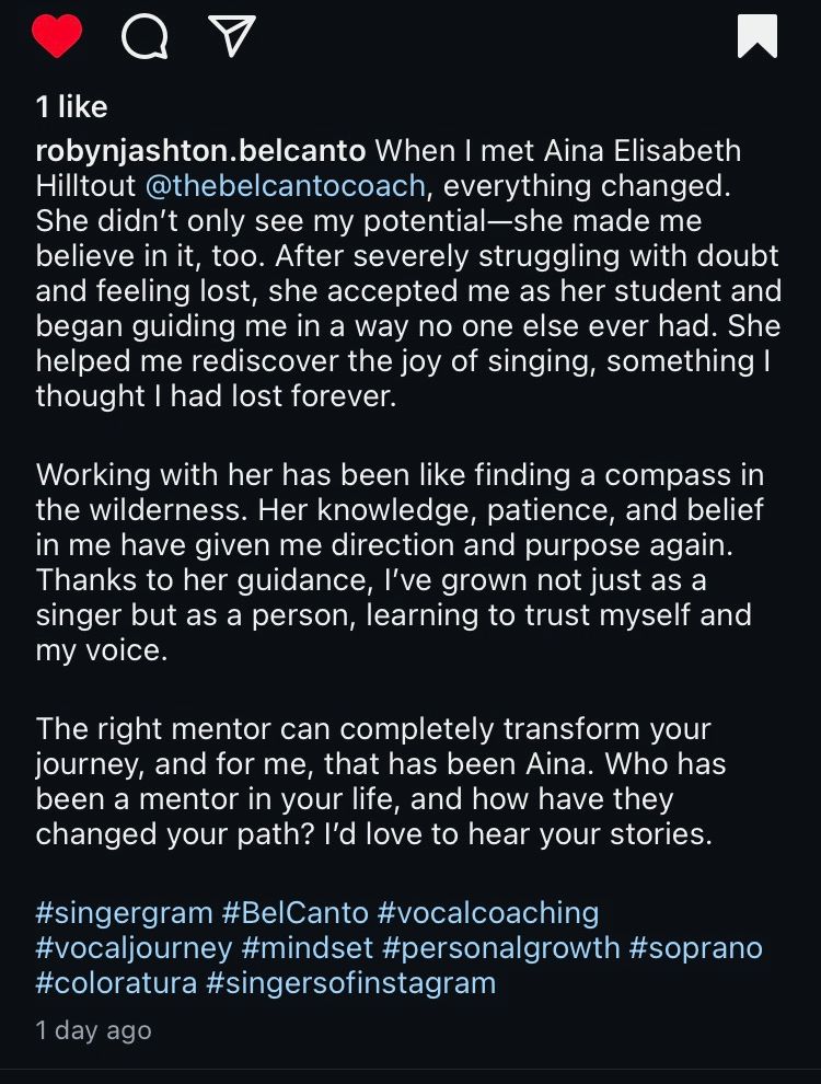Hosted by BBC-featured Bel Canto coach and opera singer Aina Hilltout — trained within the same Bel Canto lineage as Maria Callas.