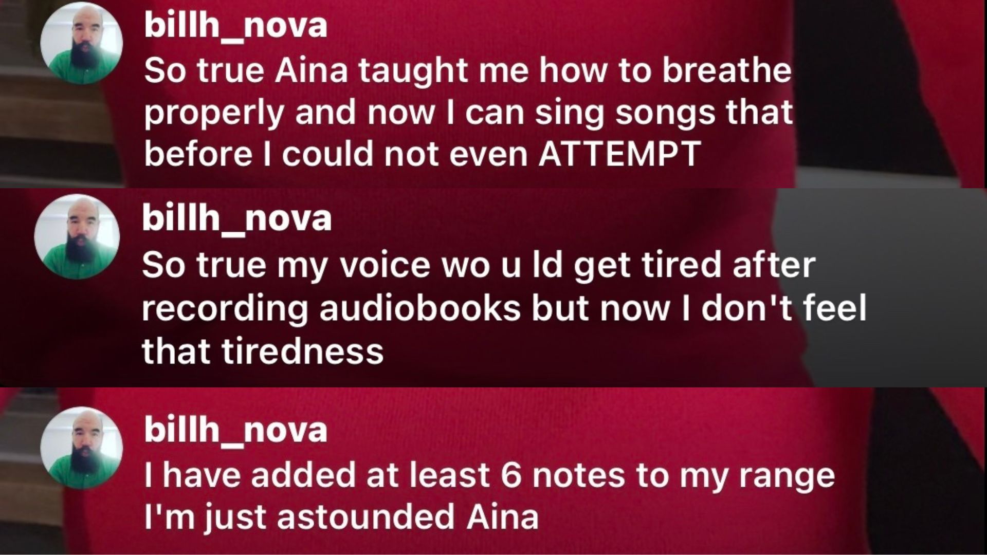 They thought their struggles with high notes, tension, big intervals, and vocal fatigue was caused by something else, but it all came down to wrong breathing. Once they learned the Bel Canto Breathing Method, their problems went away... and as a side effect they all added 2-6 notes to their range, the first three months.